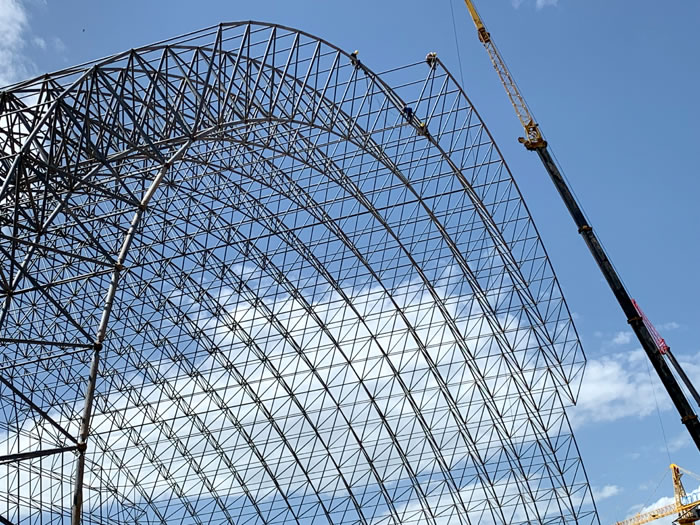 (2)网架加工前应对现场尺寸进行复测,确认无误后方可进行加工、安装;网架制作、运输、安装应遵守《空间网格结构技术规程》JGJ7-2010、《钢网架沁阳螺栓球节点》JG/T 10-2009、《钢网架沁阳螺栓球节点用高强度螺栓》 GB/T 16939-2016、《沁阳钢结构沁阳工程沁阳施工规范》 GB50755-2012、《沁阳钢结构沁阳工程施工质量验收标准》 GB50205-2020。
